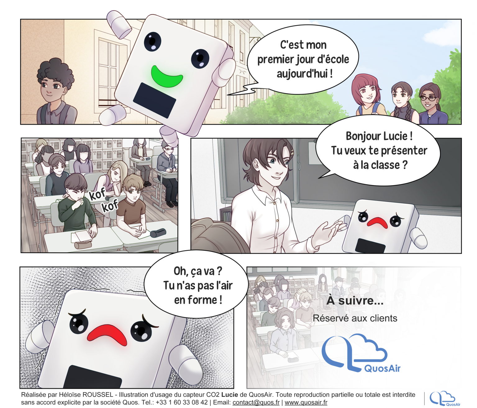 Le capteur de CO₂… Un outil encore difficile à appréhender pour les adultes. Lequel choisir ? Est-ce réellement efficace ? Un capteur de CO₂, oui mais quels en sont les bénéfices ? … Il n’est pas toujours facile de comprendre l’intérêt d’un objet qui n’est pas intégré dans nos vies. Alors qu’en est-il des enfants ? Comment leur expliquer simplement et sans les effrayer de l’intérêt du petit nouveau qui s’invite dans leurs classes ? Comment faire une bonne sensibilisation de la qualité de l’ai intérieur ? Nous proposons à nos clients un support qui explique simplement l’intérêt du capteur de CO₂.